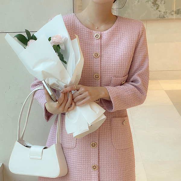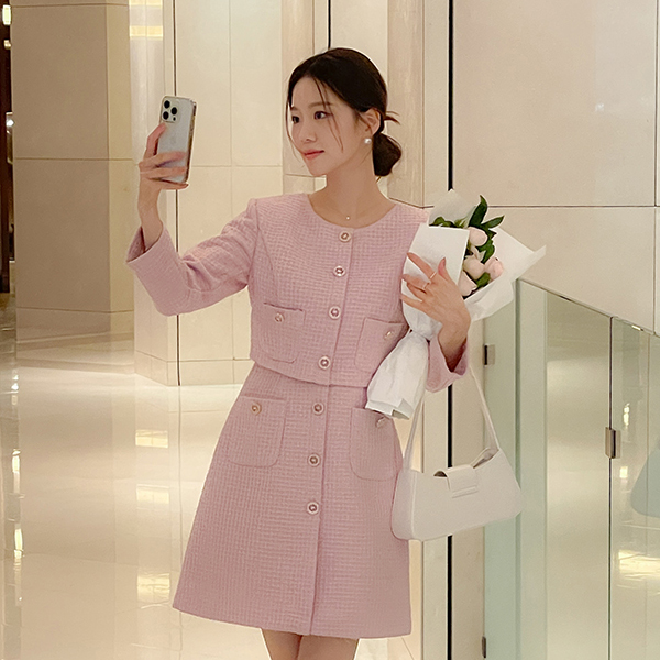 ODE Jacket Layering A-line Tweed Dress