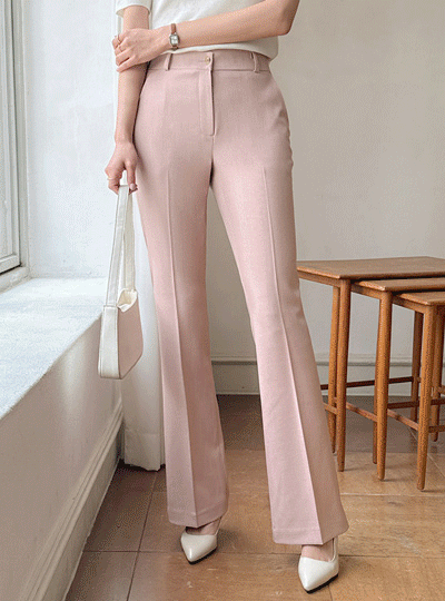 Feminine Line Back Banding Slim Boot-Cut Slacks