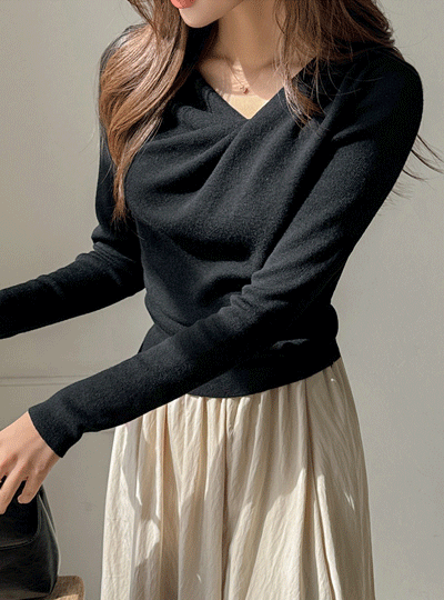 Romantic Shirring Neck Point Soft Knit