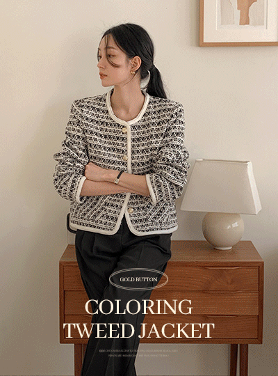 Color Combination Lining Gold Button Tweed Jacket