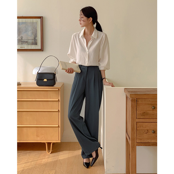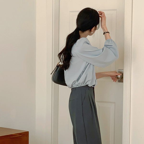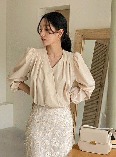 V-neck Wrap Pintuck Hems Banding Blouse