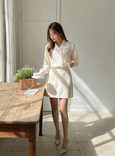 Straight Neckline Cap 내장 Corduroy Sleeveless T-shirt