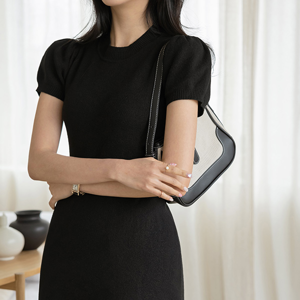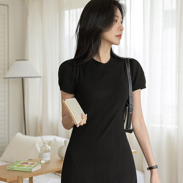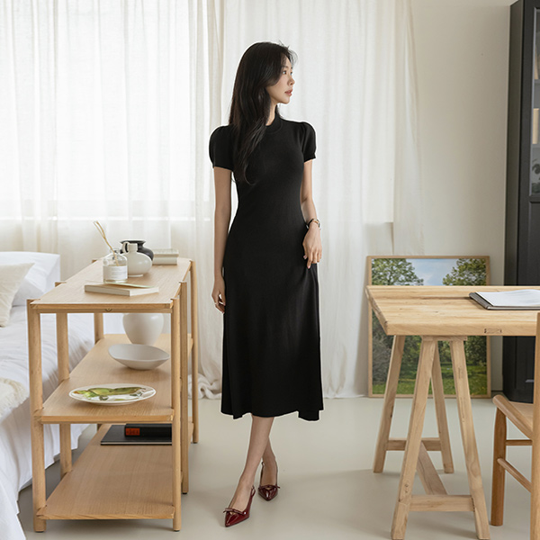 Lovely Puff A-line Long Knit Dress
