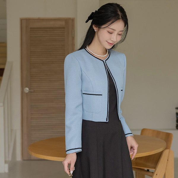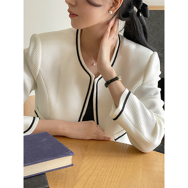 Simple Color Combination Black Lining Tweed Jacket