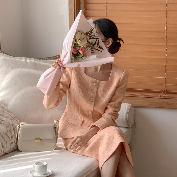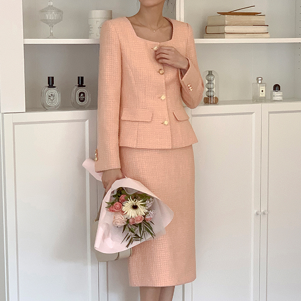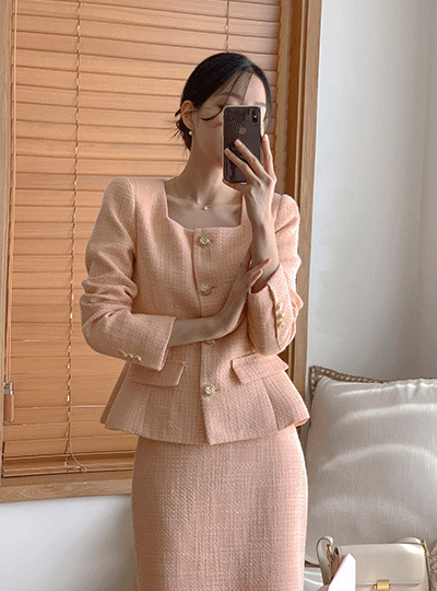 델리체 Square Neck Gold Button Tweed Jacket