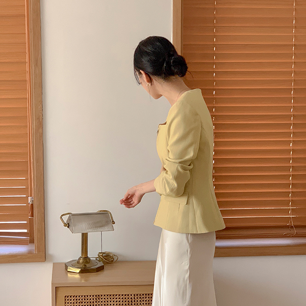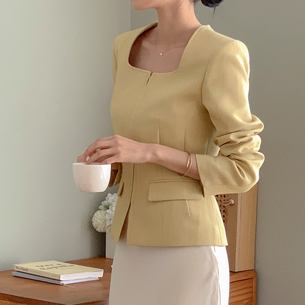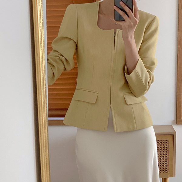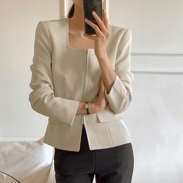 Simple Square Neck Slim Zip up Jacket