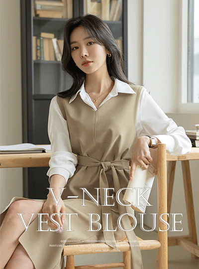 그레타 V-neck Tight Vest Blouse (BeltSET)