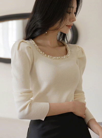 Ariel Pearl Decoration Puff Knit