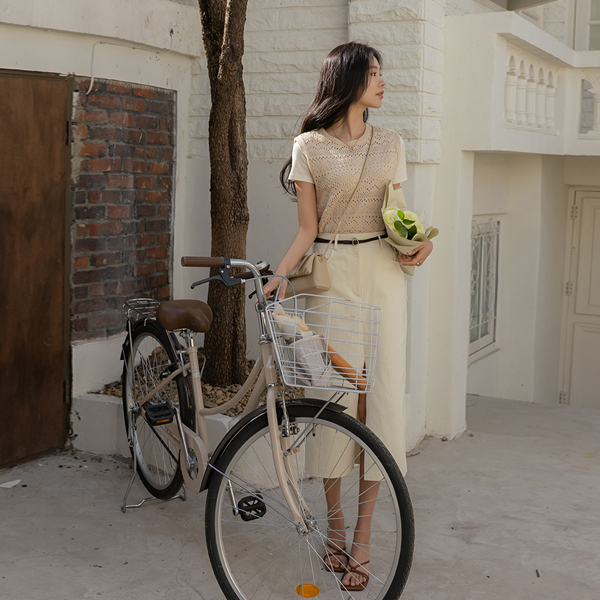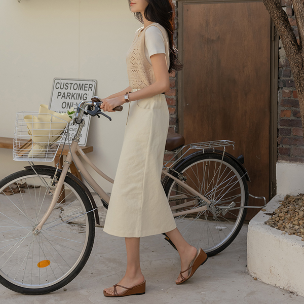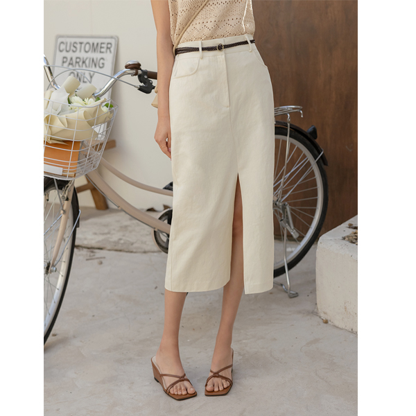 스토어 front Slit Cotton Back Banding Long Skirt