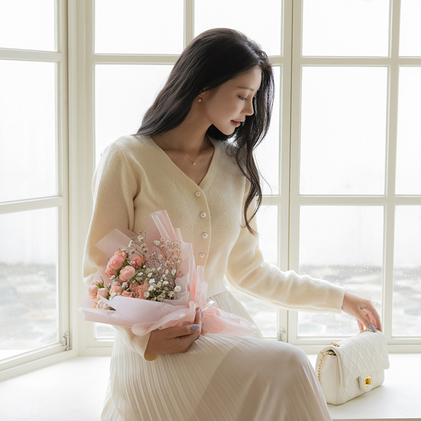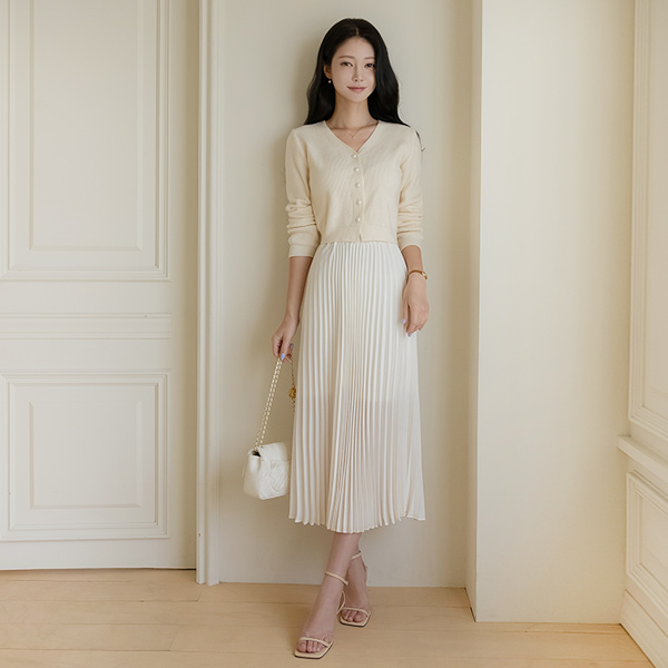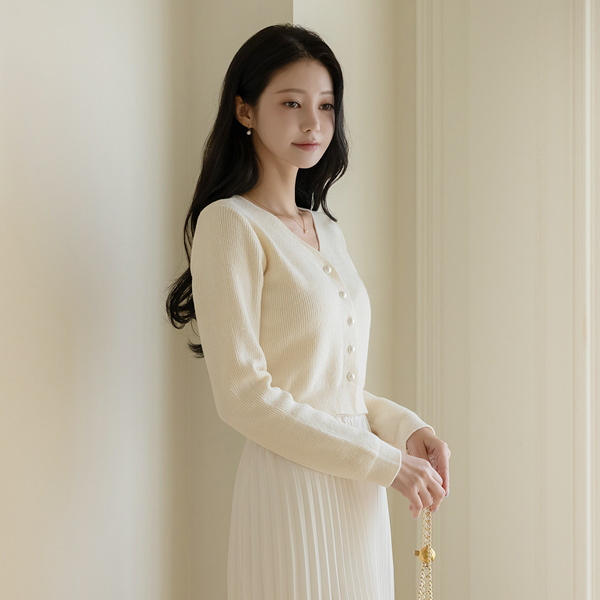V-neck Pearl Button Crop Knit Cardigan