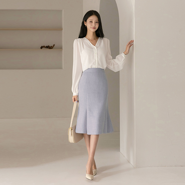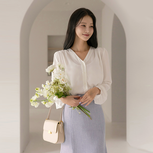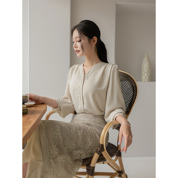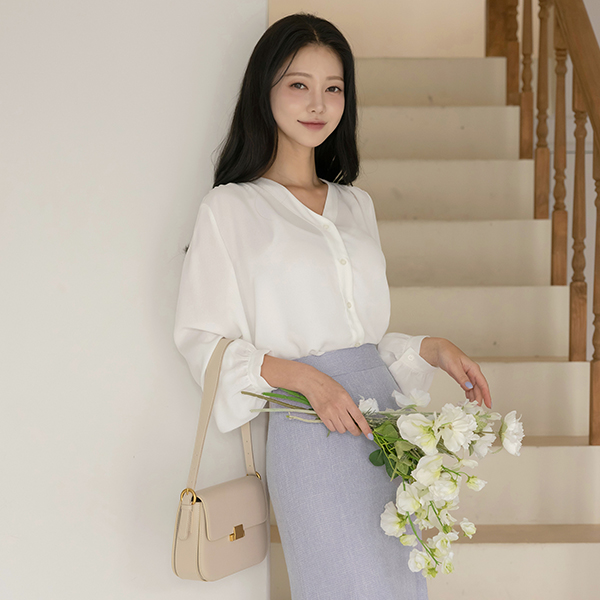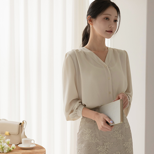 리썸 V-neck Shoulder Shirring Blouse