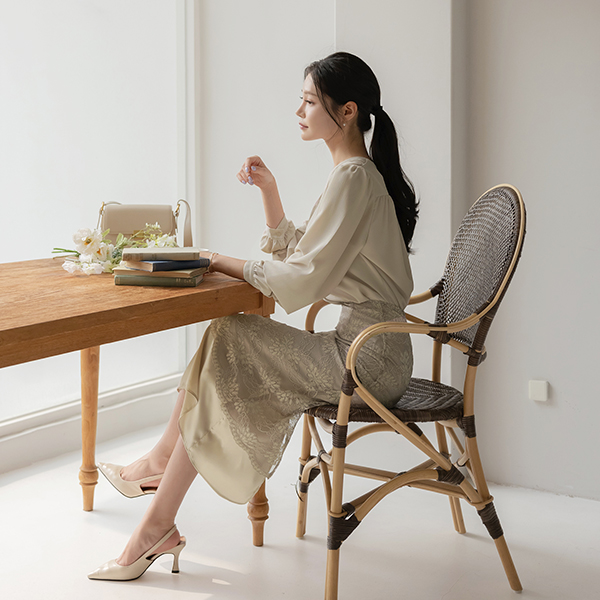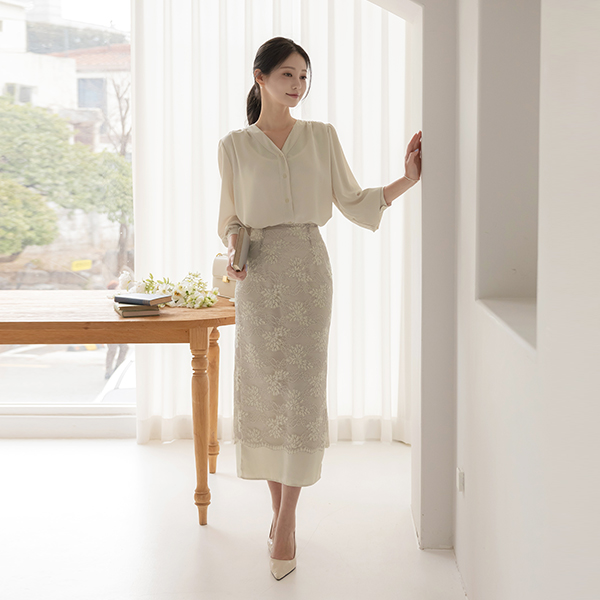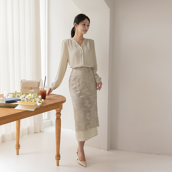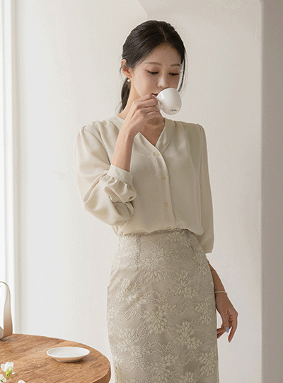 리썸 V-neck Shoulder Shirring Blouse