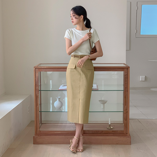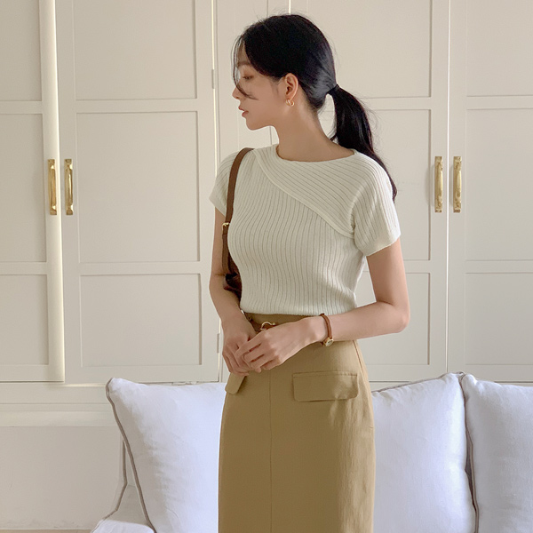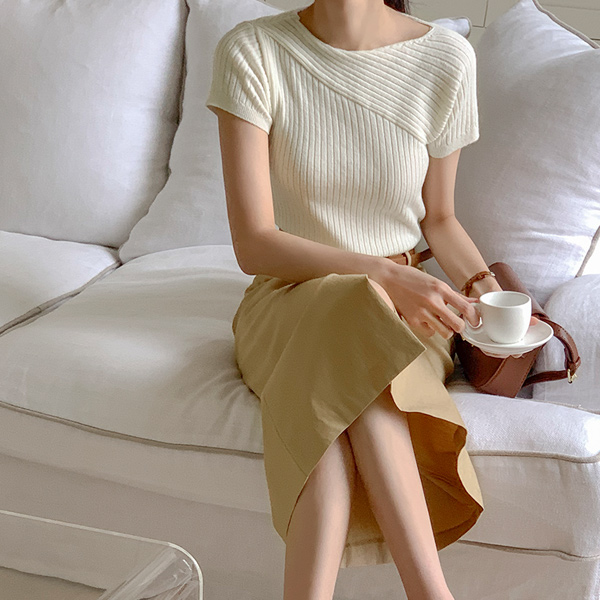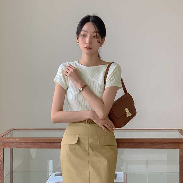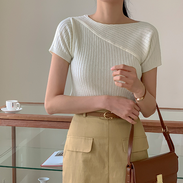 Unbalance Diagonal Corduroy Short-sleeve Knit