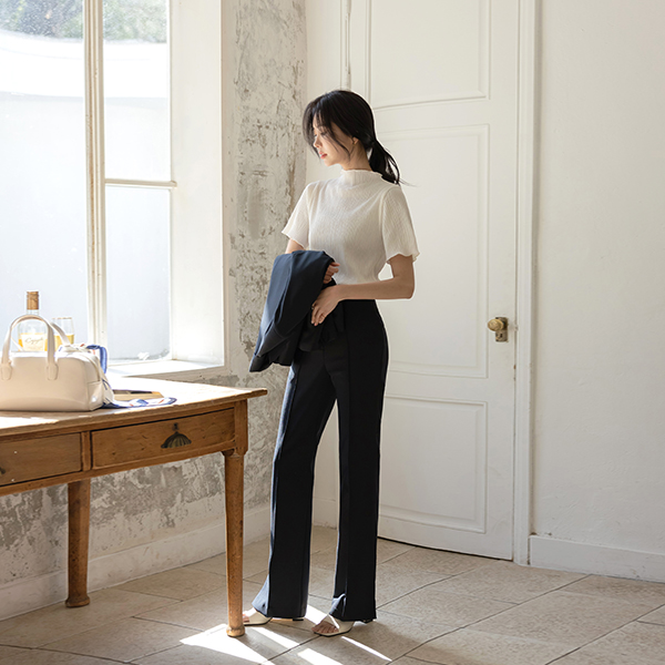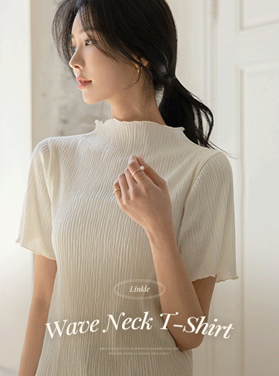 Wave Wrinkle Fabric Half-Highneck T-shirt