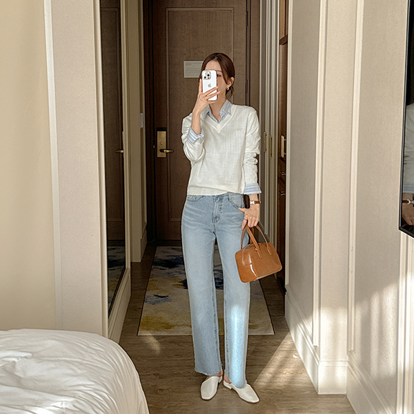 Natural Cutting Semi- wide fit Denim Pants