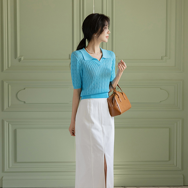 Slit Cutting Simple H-line Cotton Skirt