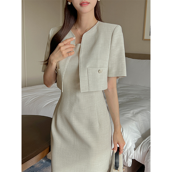 오프닝 Summer Tweed Sleeveless shirts Dress