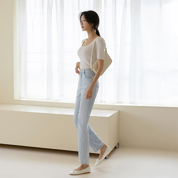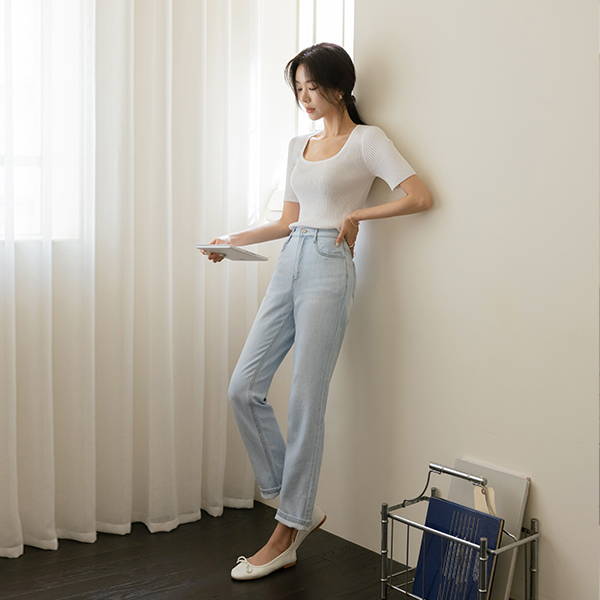 Cool Touch Color Combination-line Square Neck Knit