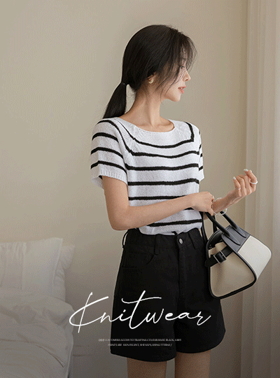 해피 Square Neck Stripe Summer Knit