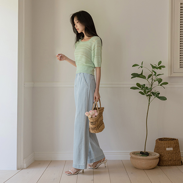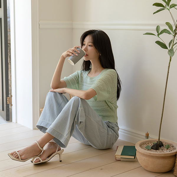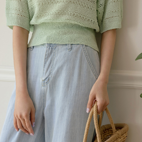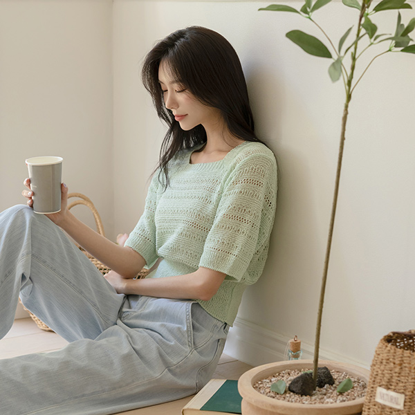 slender Diamond Woven Square Neck Knit