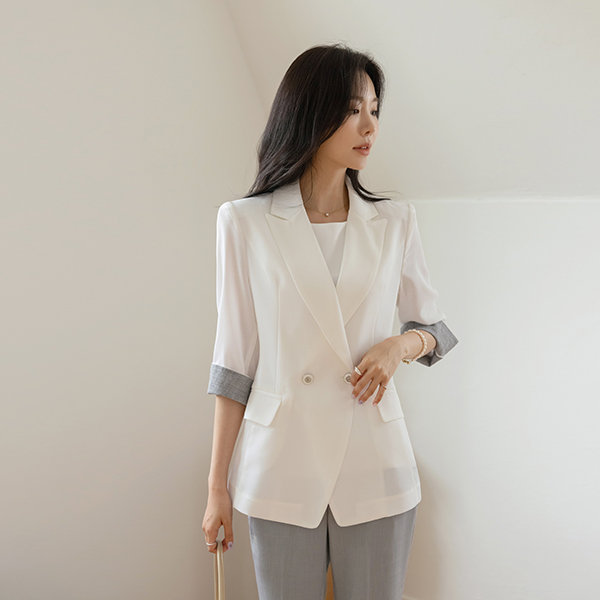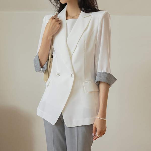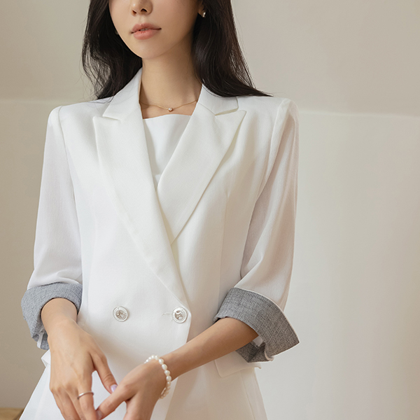 Modern Style Color Combination Sleeves Roll-up Summer Jacket