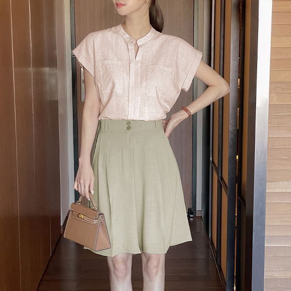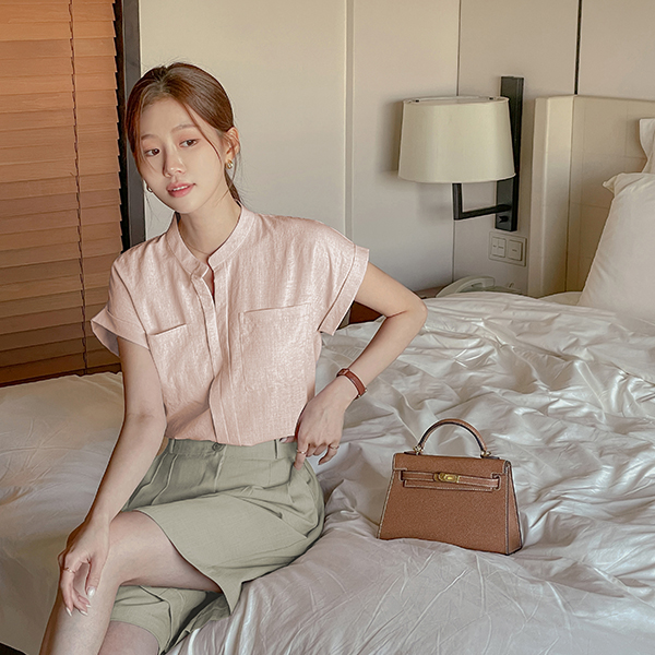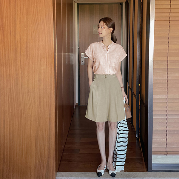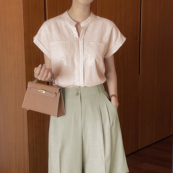 Two Pocket Linen quality Cap-Sleeves Blouse