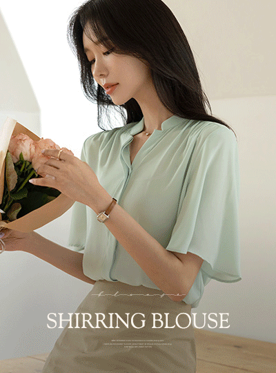 Soft Shirring Shoulder wing Sleeves Blouse