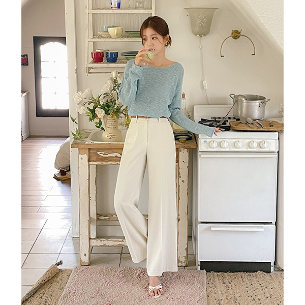 slender Boat Neck Bouclé Summer Long-sleeve Knit