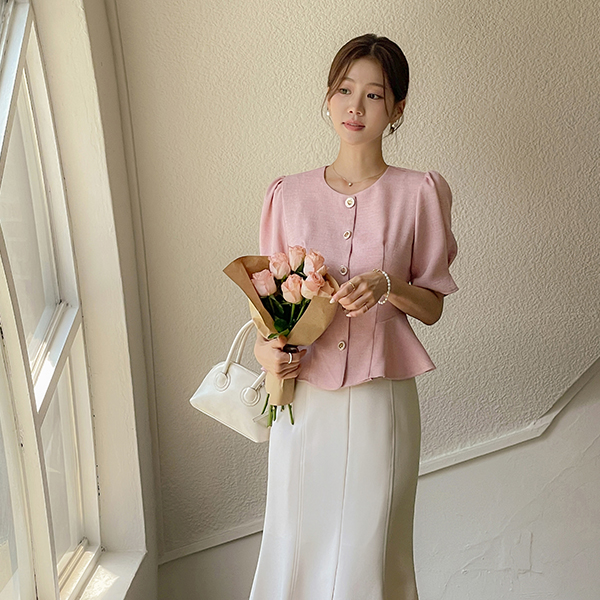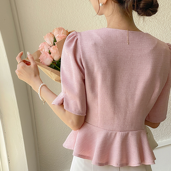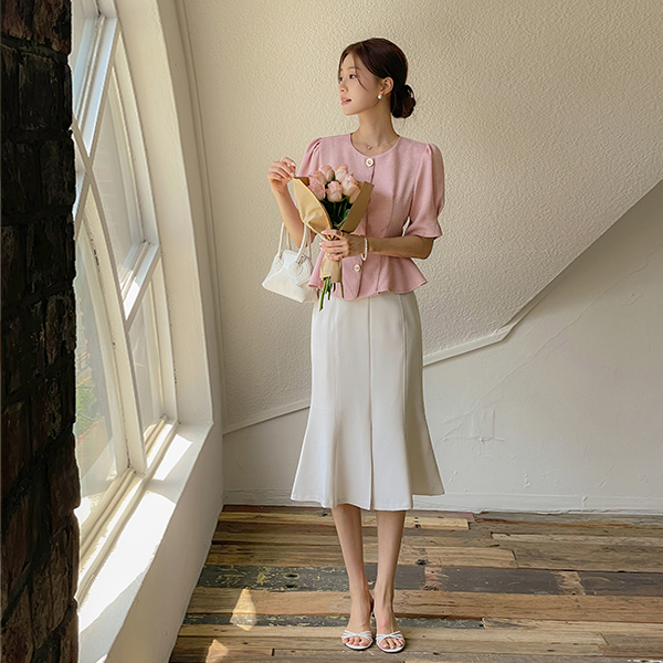 Milky Peplum Tweed Blouse