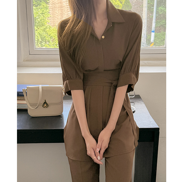 Wide Belt Point loose fit Blouse