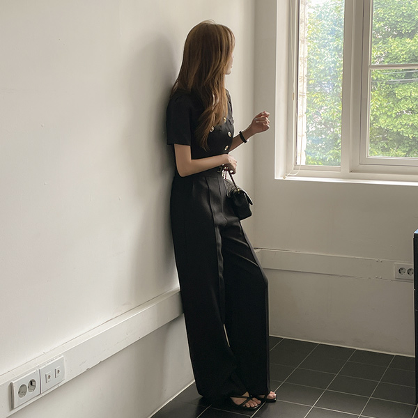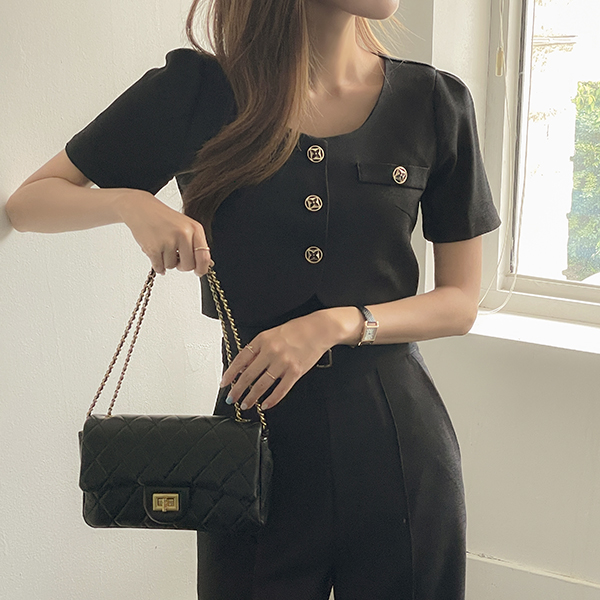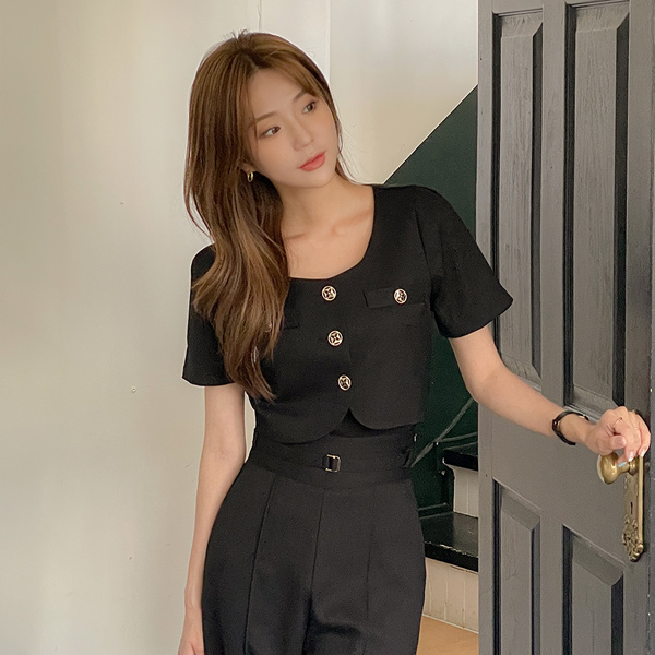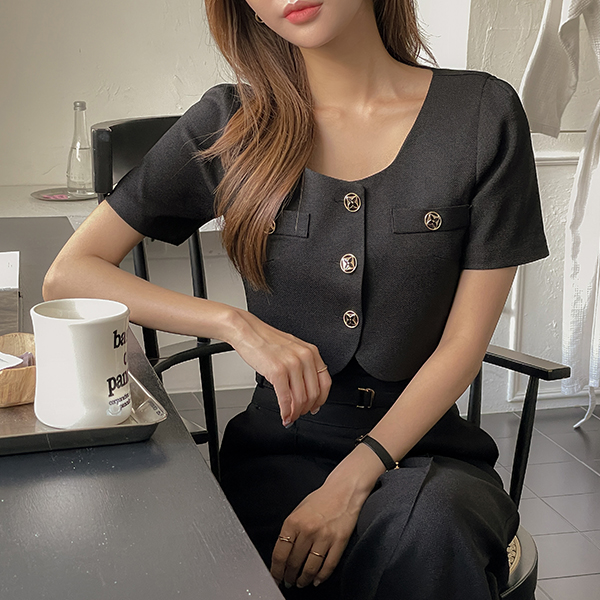 Straight Neckline Cap 내장 Corduroy Sleeveless T-shirt