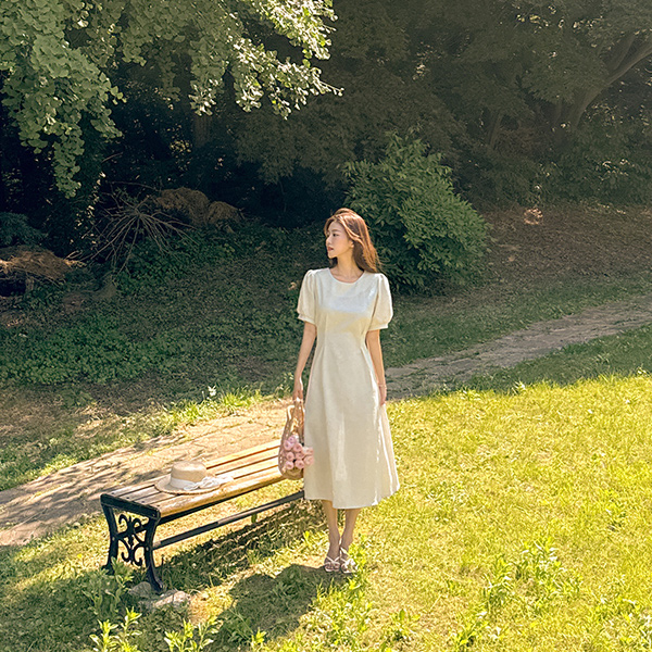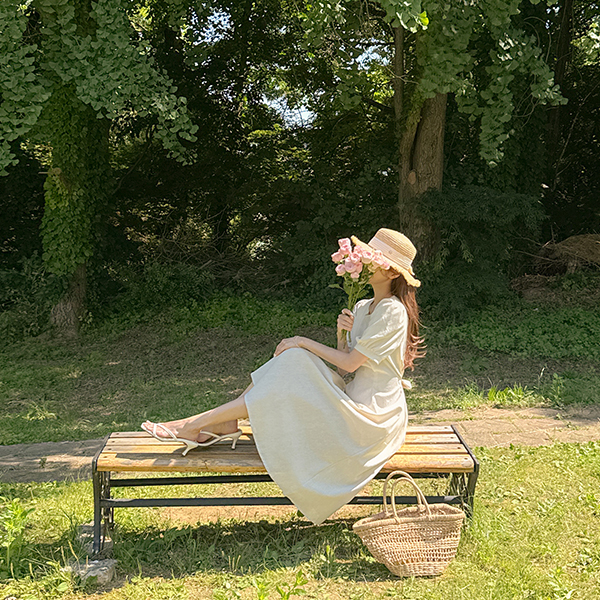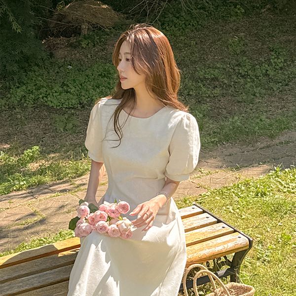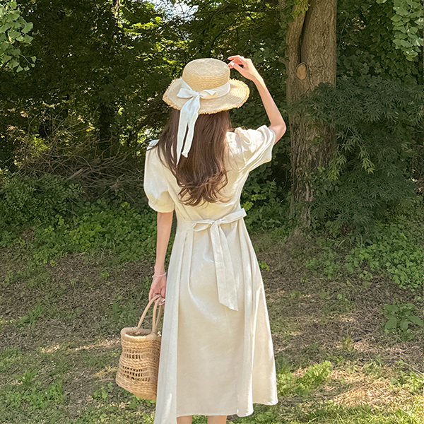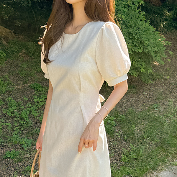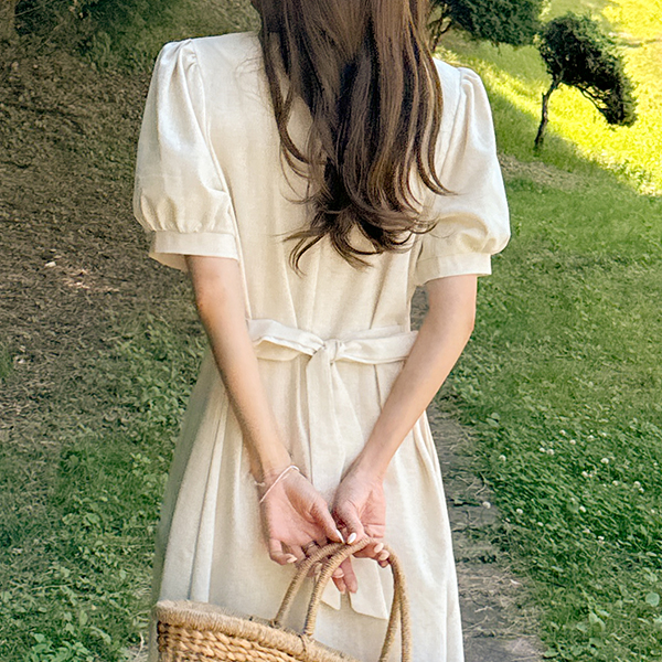디어 Linen Pintuck Short-sleeve Dress