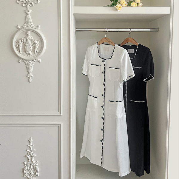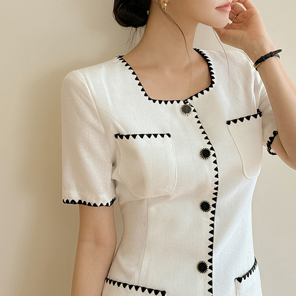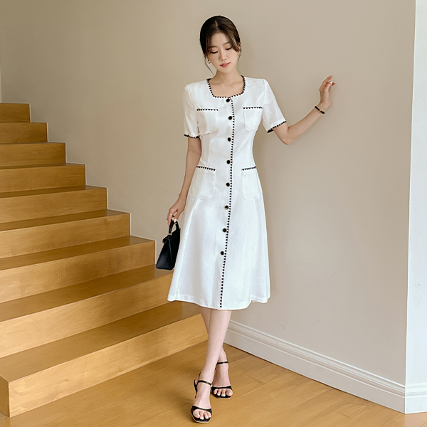 Embroidery Square Neck A-line Dress