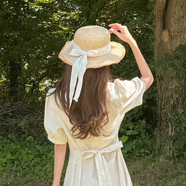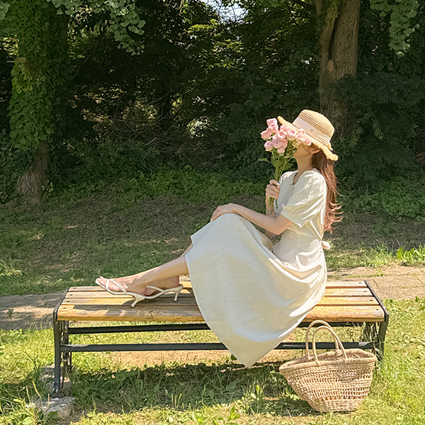 디어 Linen Pintuck Short-sleeve Dress