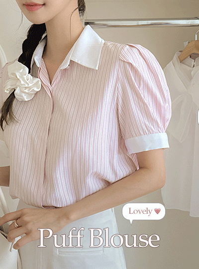 엘리아 Stripe Puff Sleeves Blouse
