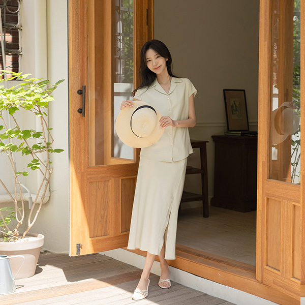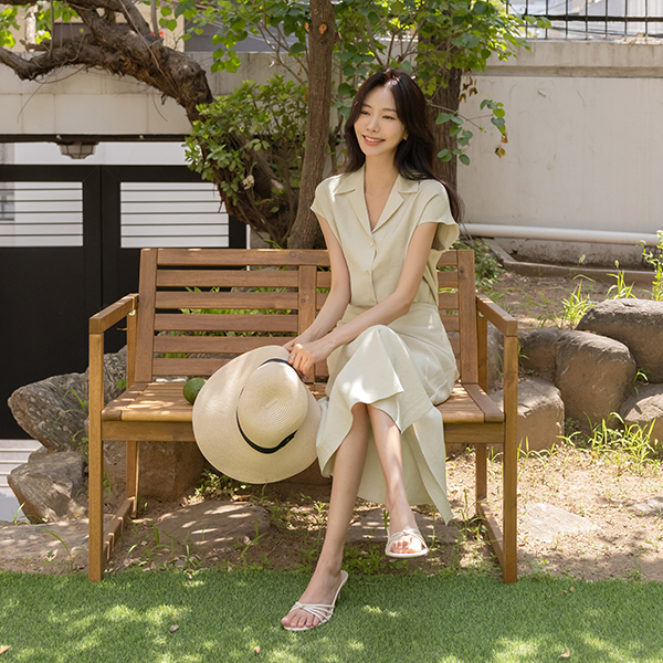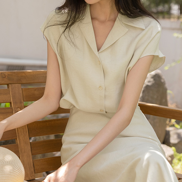 나나 Linen Cap-Sleeves Set-up Blouse