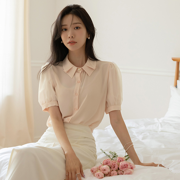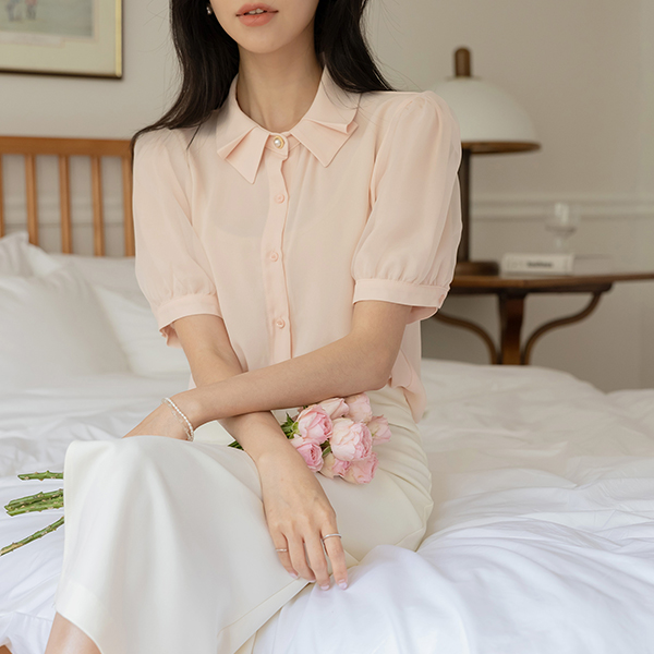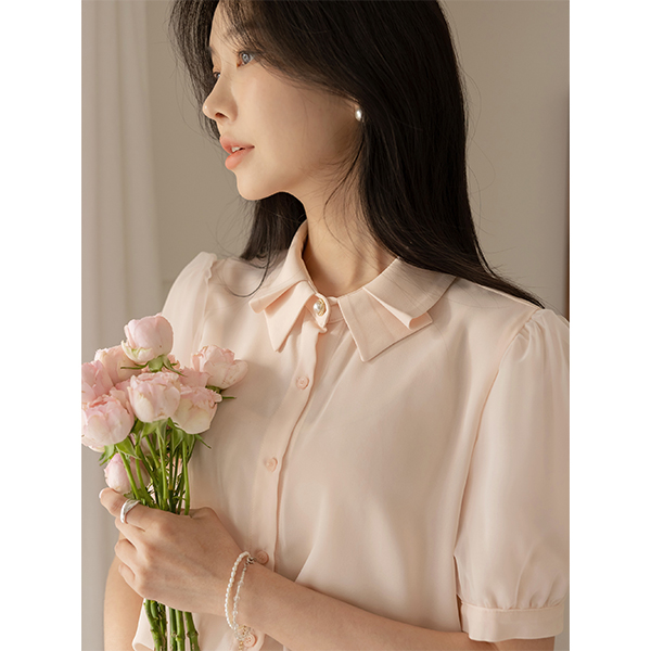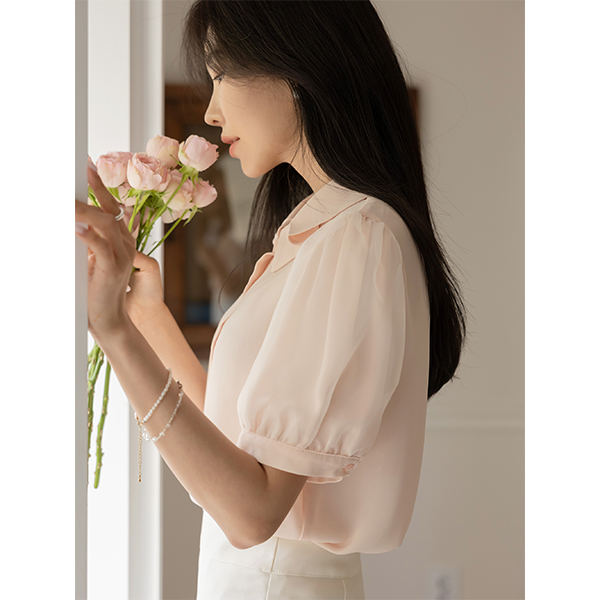 Romantic Puff Pintuck Collar Blouse