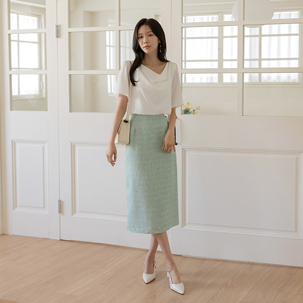 Elegance Cowl Neck 훌 Short-sleeve Blouse