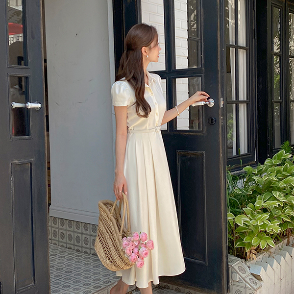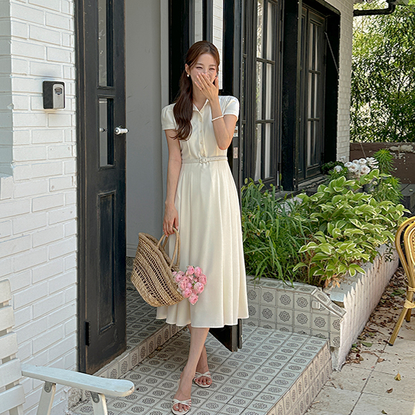 Mari Polo Pleats Belt Dress