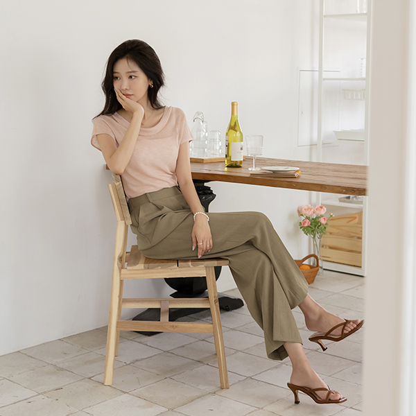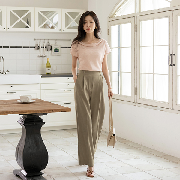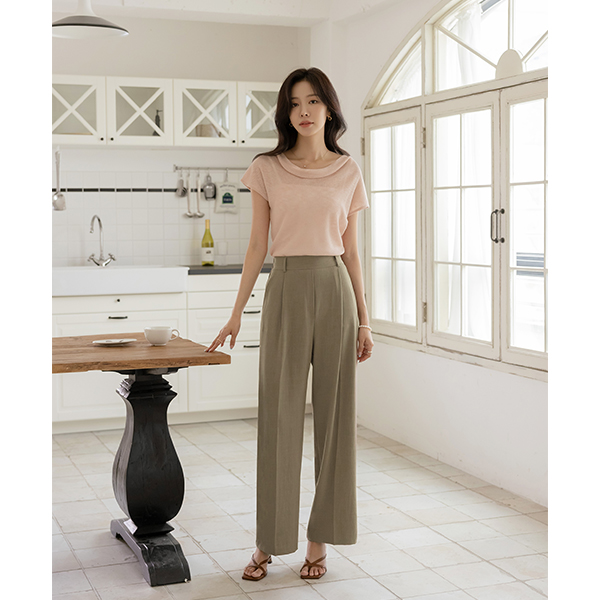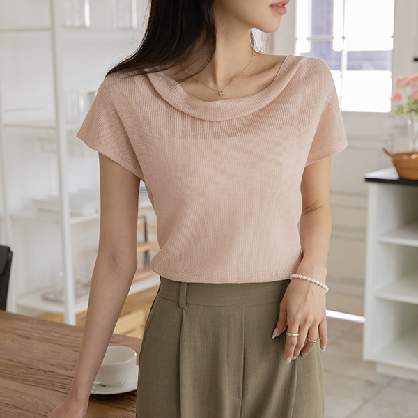 Venus Shirring Cowl Neck Cap-Sleeves Knit