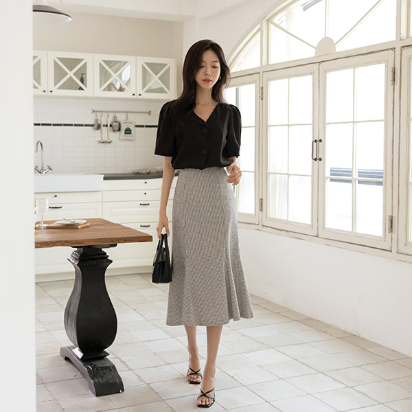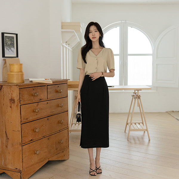 Cool Wrinkle Slit Back Banding H-line Skirt