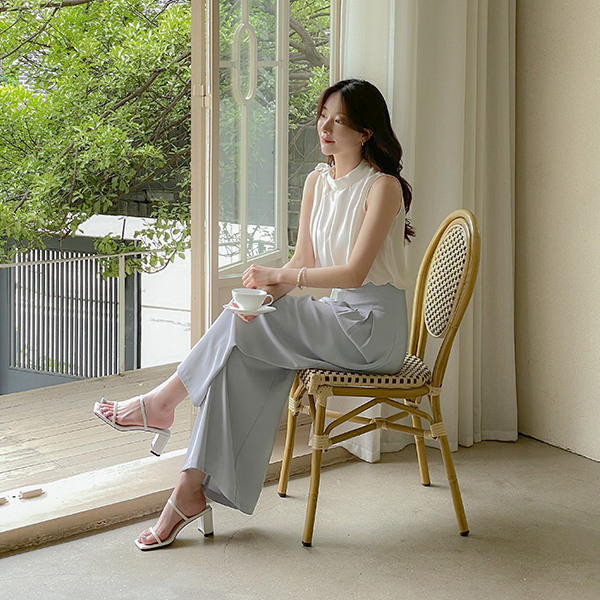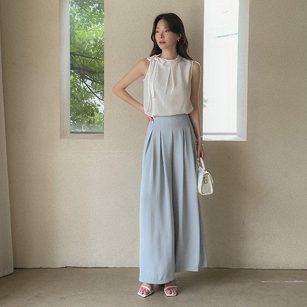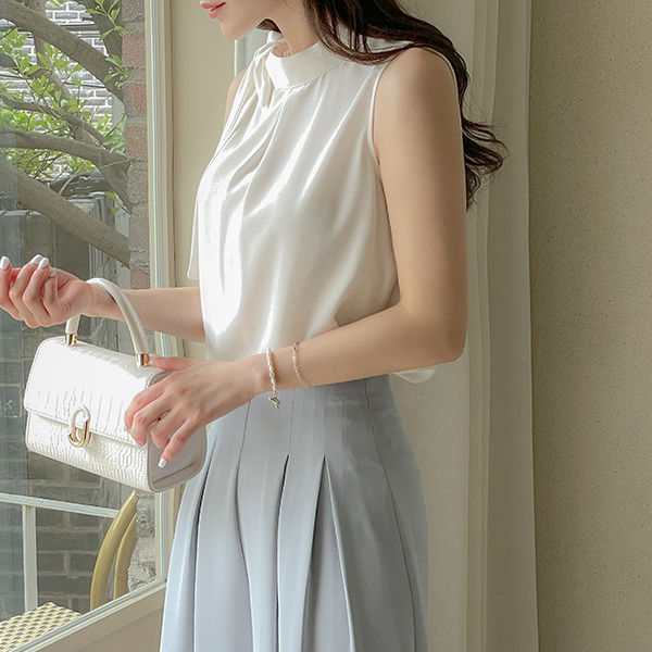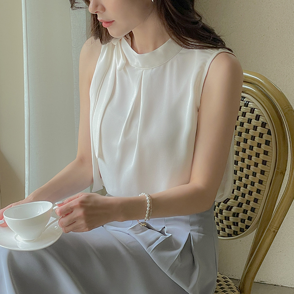 Side Ribbon neckline Sleeveless shirts Blouse