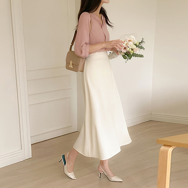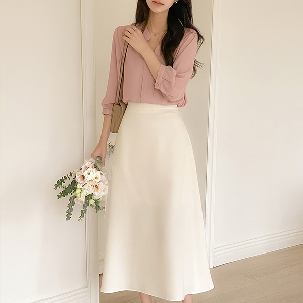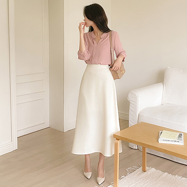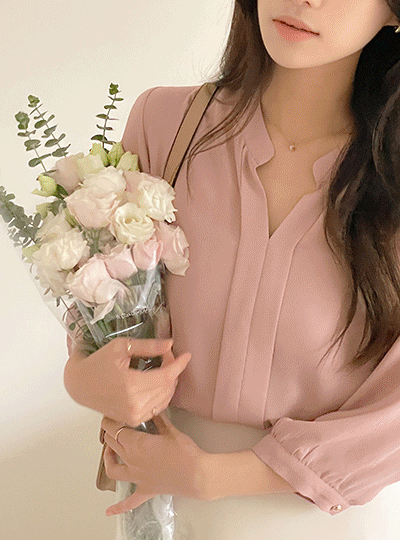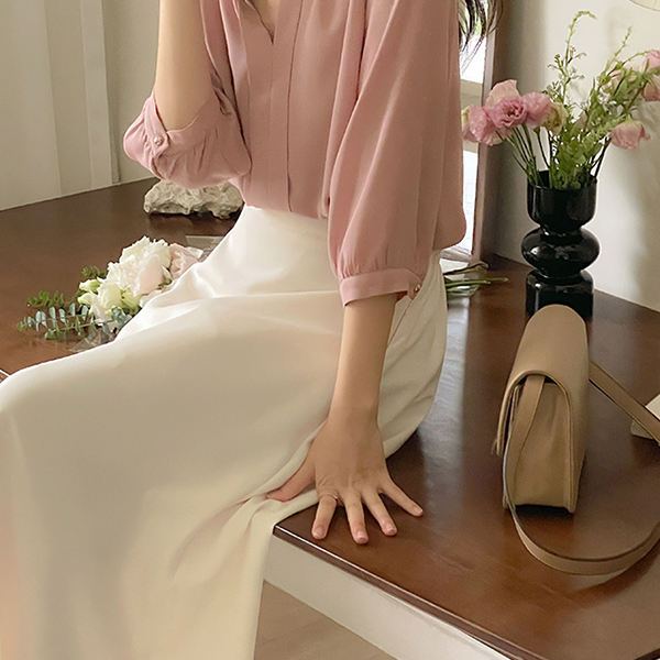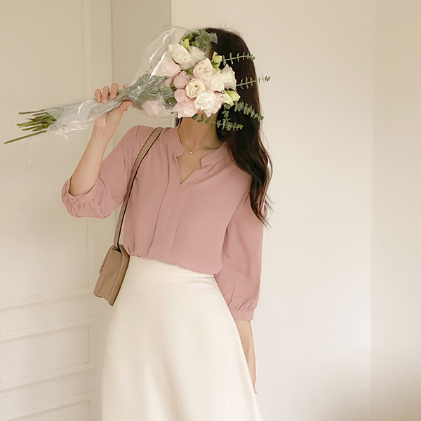 Soft Three-Quarter Sleeves Official Ruffle Line Blouse