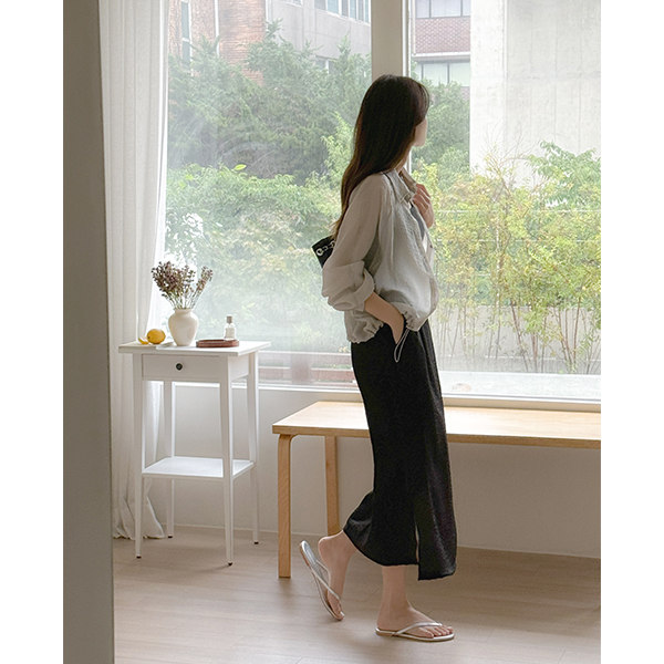 Cool Wrinkle Slit Back Banding H-line Skirt