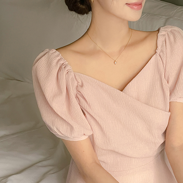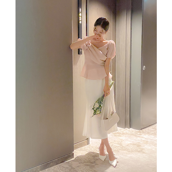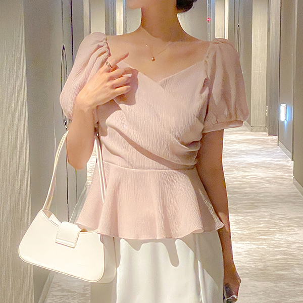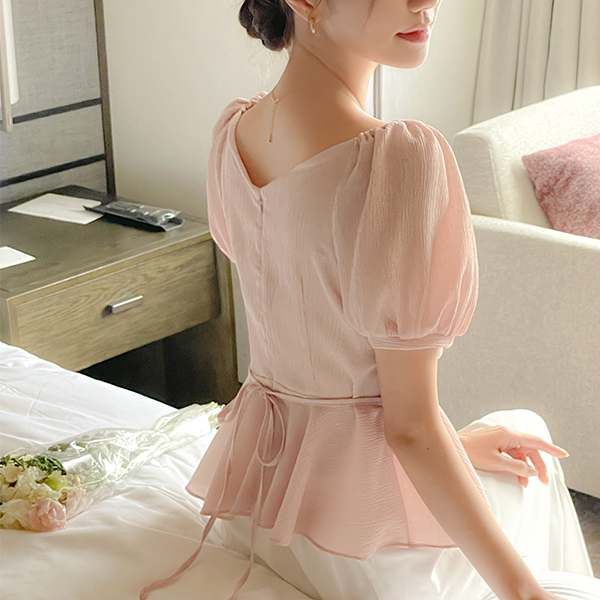 Romantic 뒷 Ribbon Peplum Wrinkle Blouse