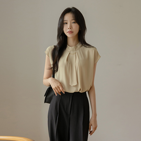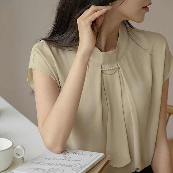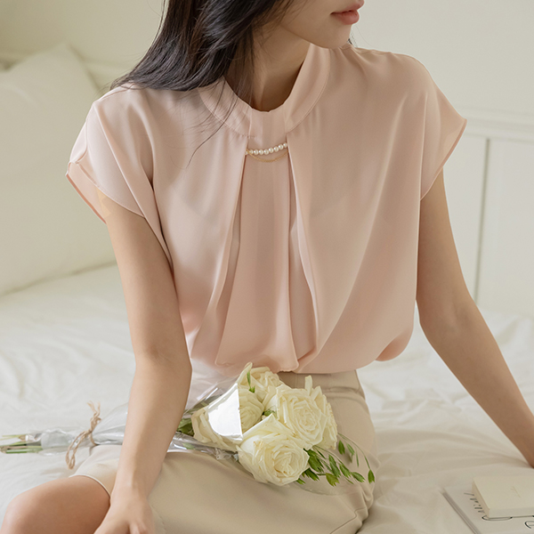 Pearl Necklace Soft Scarf Blouse