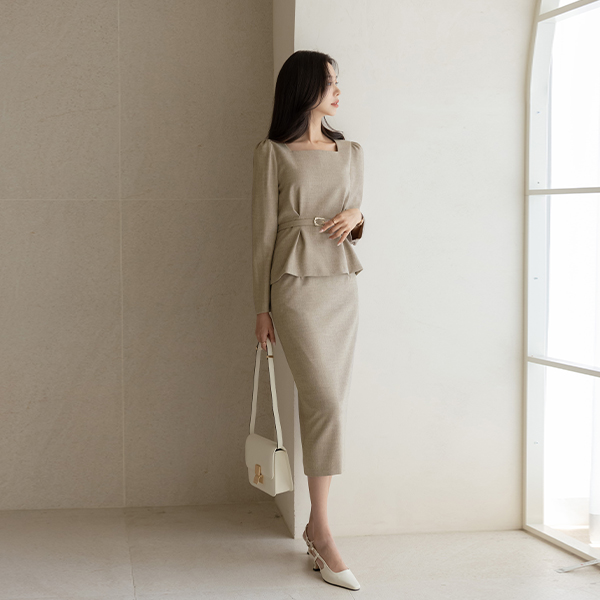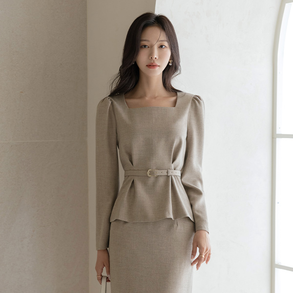 매그 맞주름 Belt Set-up Blouse