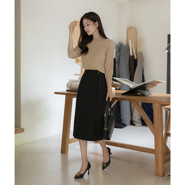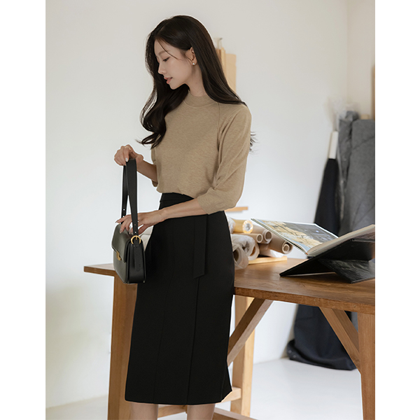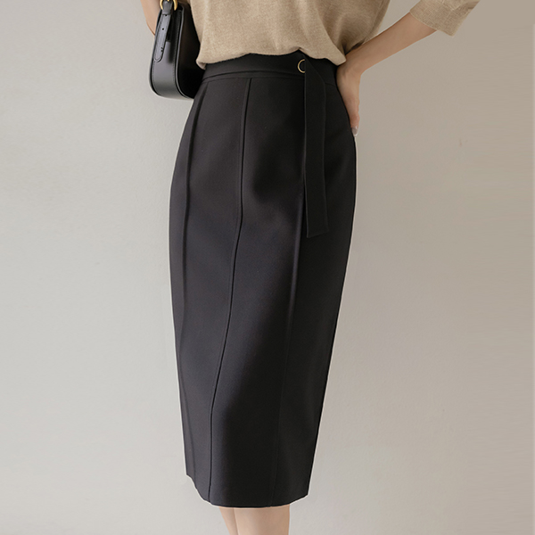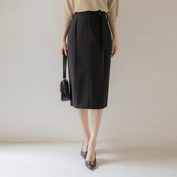 Belted Cutting H-line Skirt