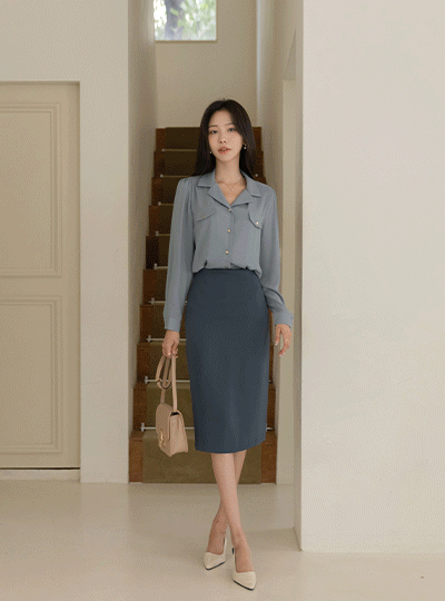 Shirring-Highneck Double See-through Blouse Ⅲ