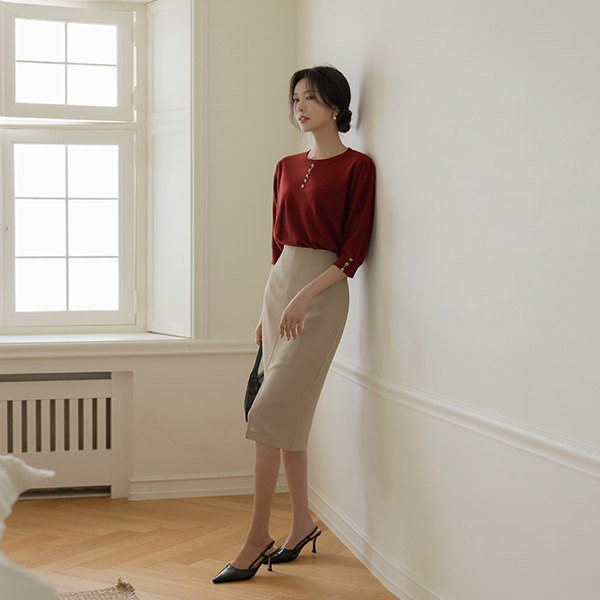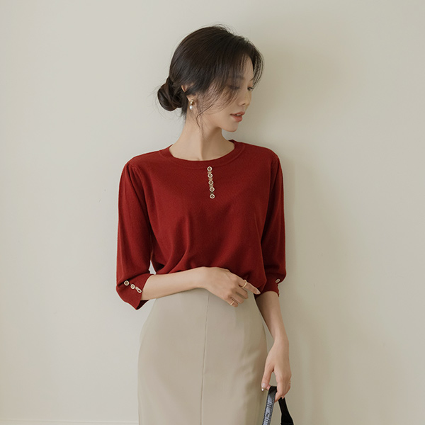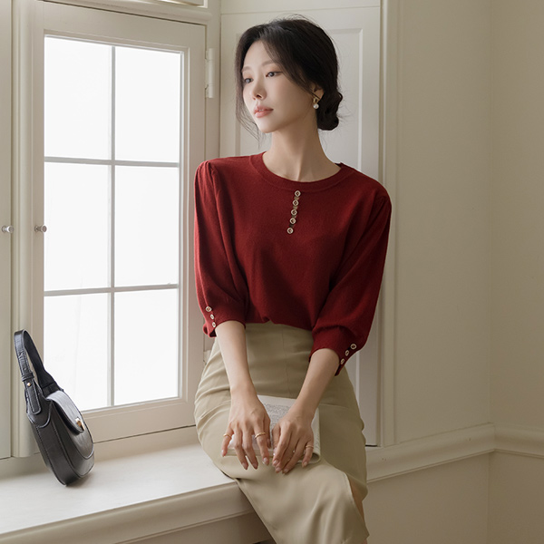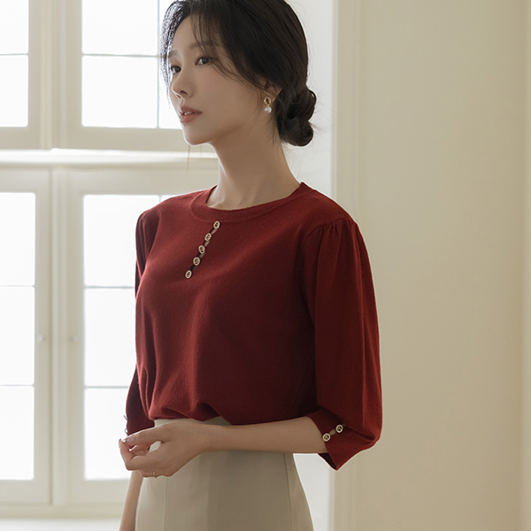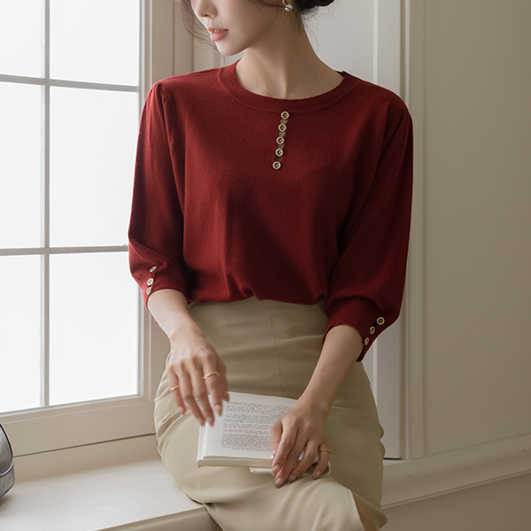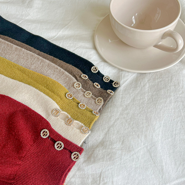 Jewel Button Center Front Vent Raund neck Autumn Color Knit